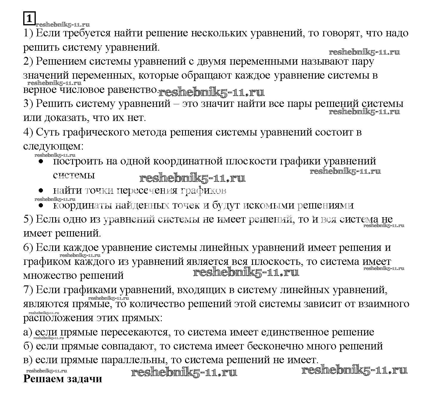 § 26. Системы уравнений с двумя переменными. Графический метод решения систему двух линейных уравнений методом подстановки. Страница 44-51