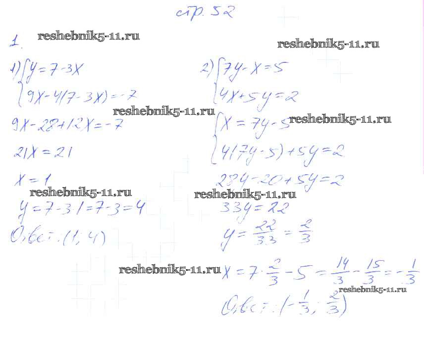 Готовая домашняя работа с ответами по Алгебре за 7 класс Мерзляк, Полонский, Якир Рабочая тетрадь Алгоритм успеха Часть 1, 2 Вентана-граф 2018 ФГОС - § 27. Решение систем линейных уравнений методом подстановки. Страница 52-57 1