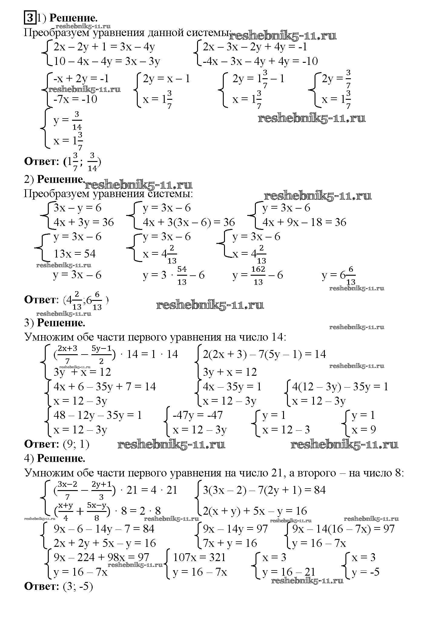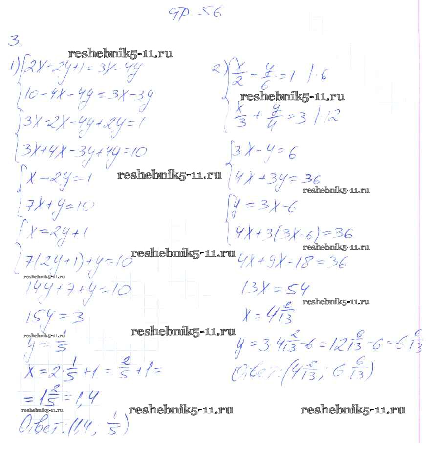 Готовая домашняя работа с ответами по Алгебре за 7 класс Мерзляк, Полонский, Якир Рабочая тетрадь Алгоритм успеха Часть 1, 2 Вентана-граф 2018 ФГОС - § 27. Решение систем линейных уравнений методом подстановки. Страница 52-57 3