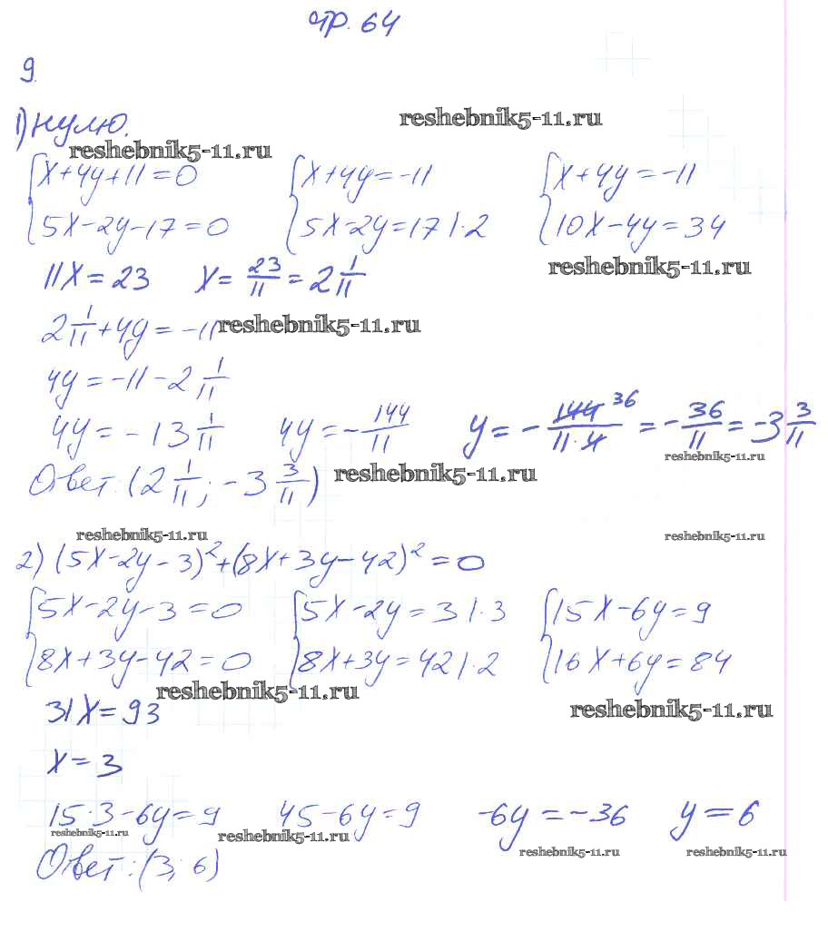Готовая домашняя работа с ответами по Алгебре за 7 класс Мерзляк, Полонский, Якир Рабочая тетрадь Алгоритм успеха Часть 1, 2 Вентана-граф 2018 ФГОС - § 28. Решение систем линейных уравнений методом сложения. Страница 58-67 9