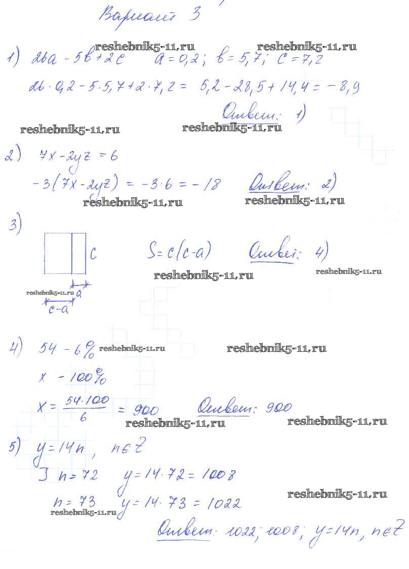 Готовая домашняя работа с ответами по Алгебре за 7 класс Глазков, Гаиашвили Самостоятельные и контрольные работы УМК Экзамен 2019 ФГОС - СР-1 (варианты) вариант 3