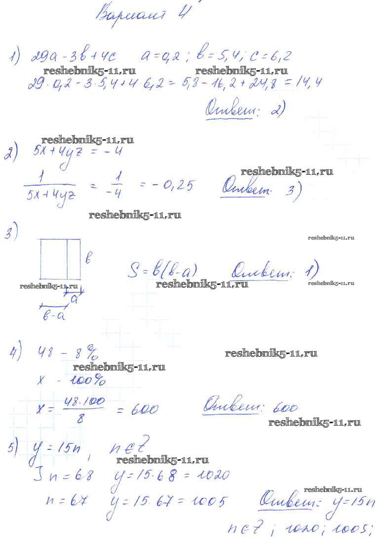 Готовая домашняя работа с ответами по Алгебре за 7 класс Глазков, Гаиашвили Самостоятельные и контрольные работы УМК Экзамен 2019 ФГОС - СР-1 (варианты) вариант 4