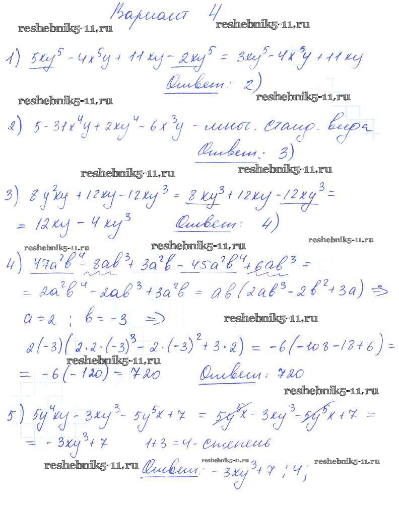 Готовая домашняя работа с ответами по Алгебре за 7 класс Глазков, Гаиашвили Самостоятельные и контрольные работы УМК Экзамен 2019 ФГОС - СР-17 вариант 4