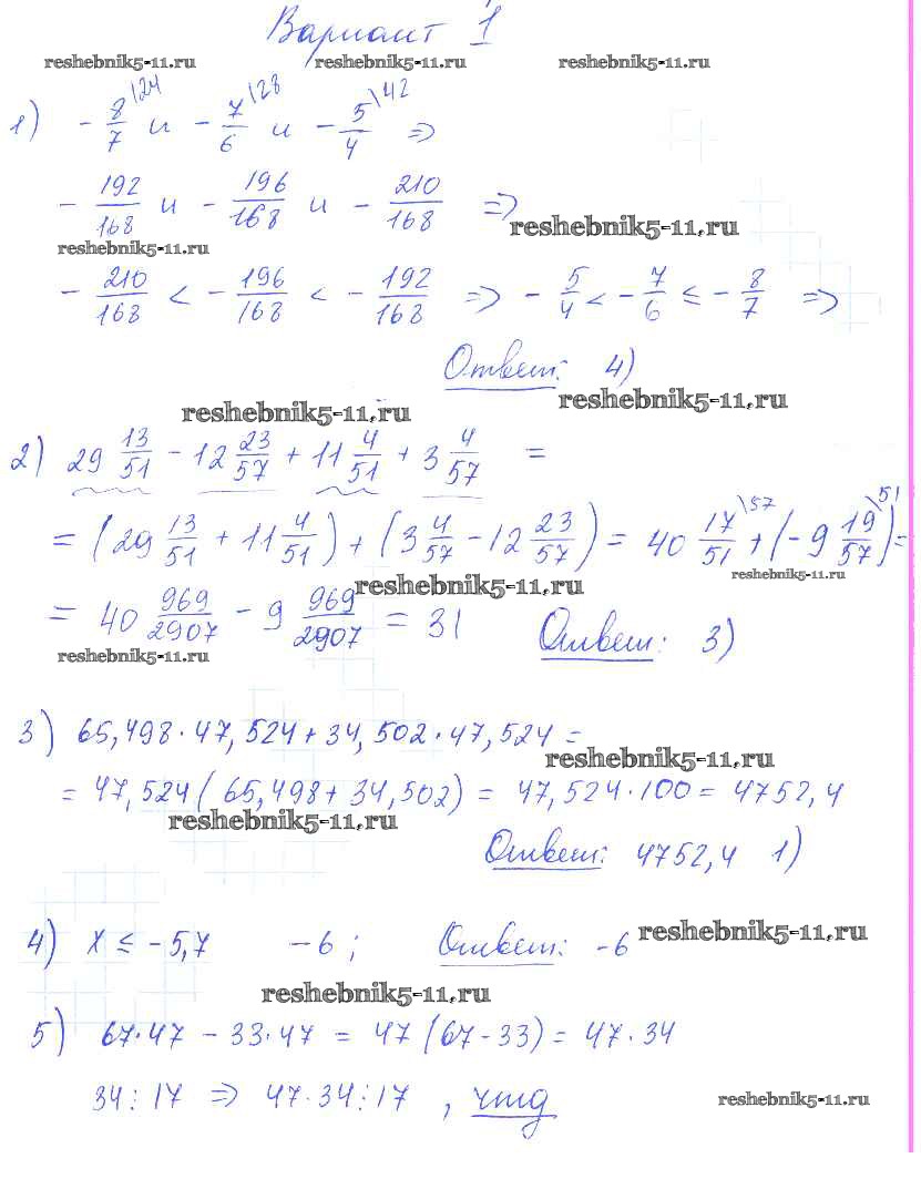 Готовая домашняя работа с ответами по Алгебре за 7 класс Глазков, Гаиашвили Самостоятельные и контрольные работы УМК Экзамен 2019 ФГОС - СР-2 вариант 1