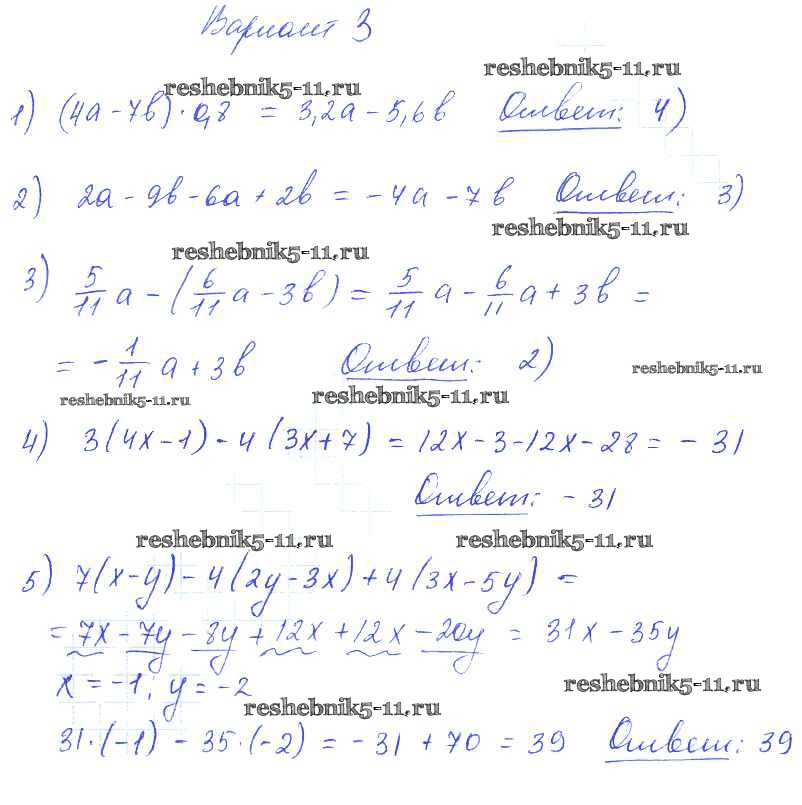 Готовая домашняя работа с ответами по Алгебре за 7 класс Глазков, Гаиашвили Самостоятельные и контрольные работы УМК Экзамен 2019 ФГОС - СР-3 вариант 3