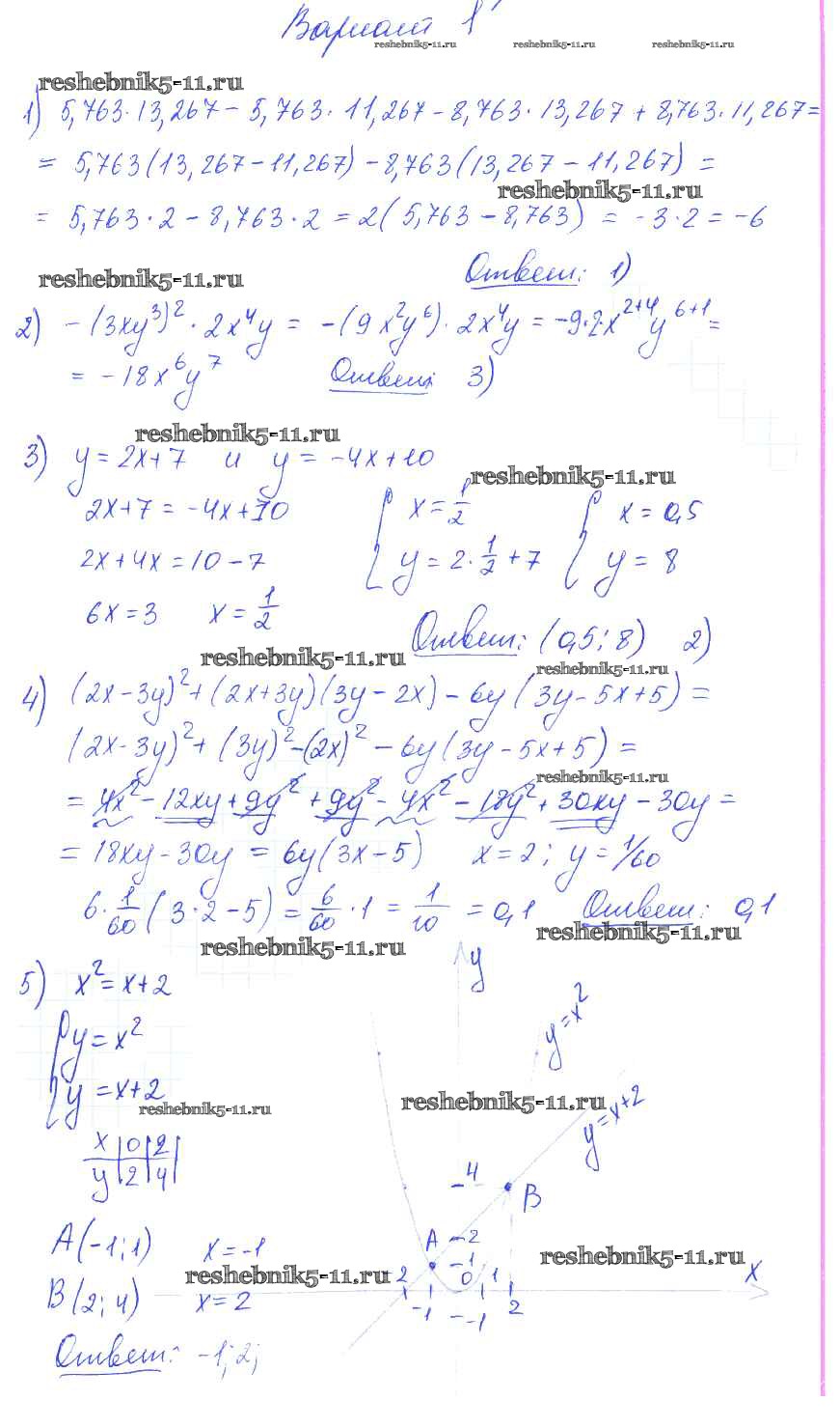 Готовая домашняя работа с ответами по Алгебре за 7 класс Глазков, Гаиашвили Самостоятельные и контрольные работы УМК Экзамен 2019 ФГОС - СР-33 вариант 1
