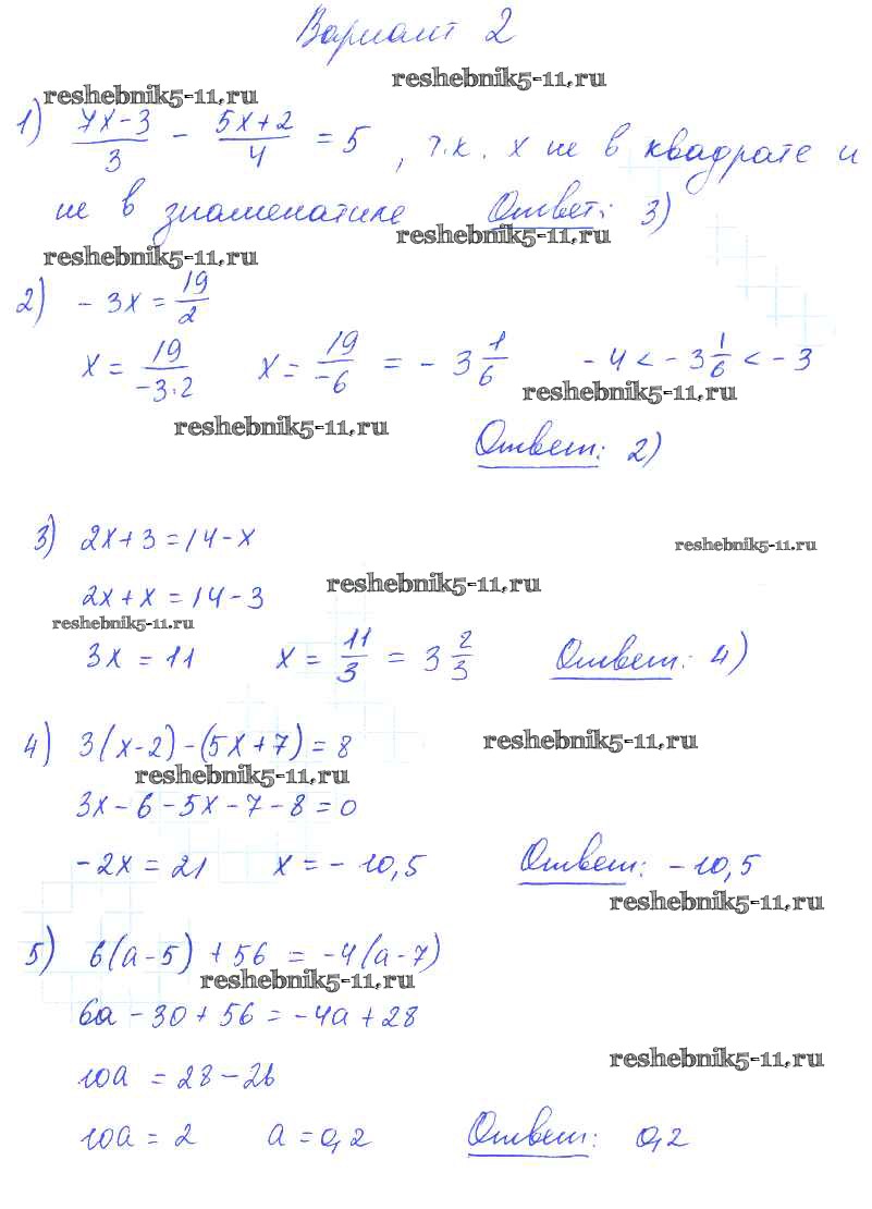 Готовая домашняя работа с ответами по Алгебре за 7 класс Глазков, Гаиашвили Самостоятельные и контрольные работы УМК Экзамен 2019 ФГОС - СР-5 вариант 2