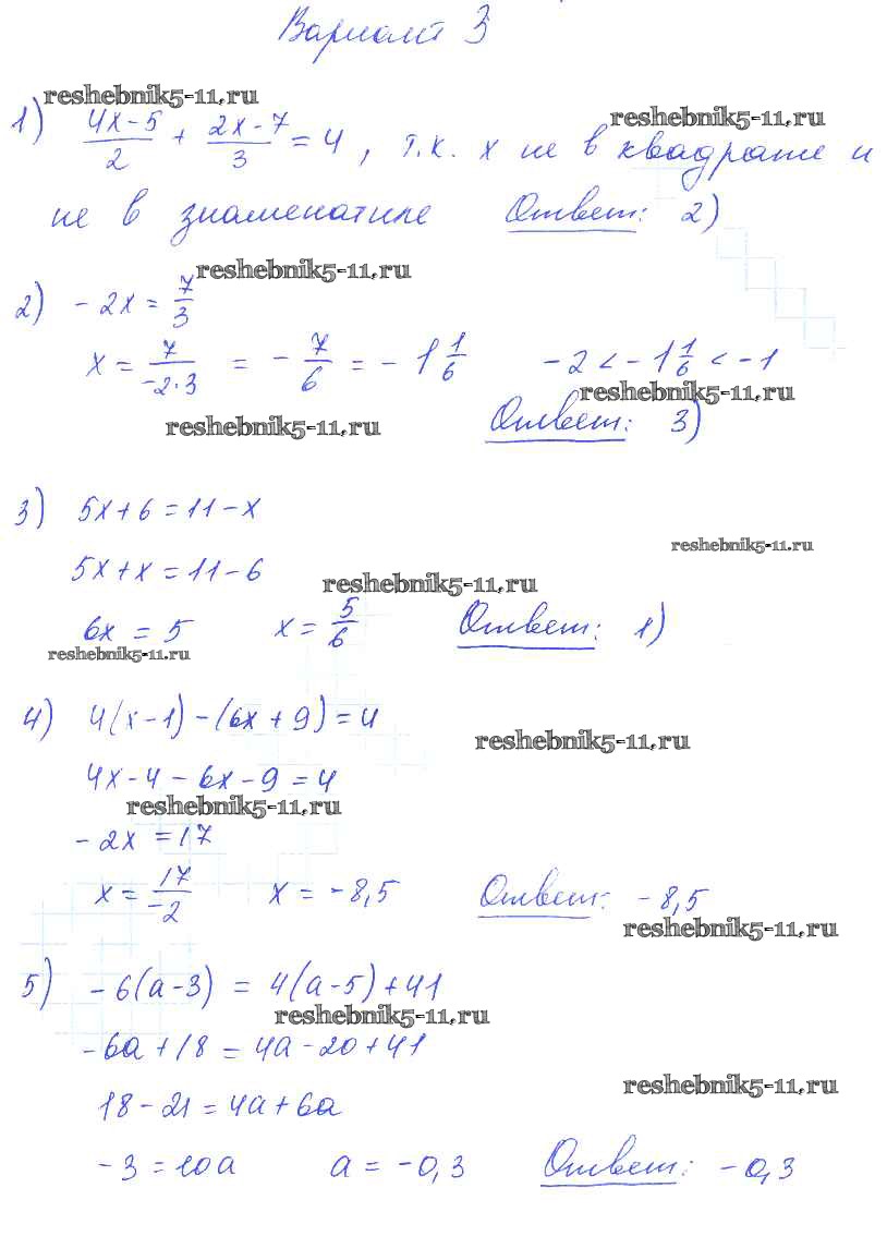 Готовая домашняя работа с ответами по Алгебре за 7 класс Глазков, Гаиашвили Самостоятельные и контрольные работы УМК Экзамен 2019 ФГОС - СР-5 вариант 3