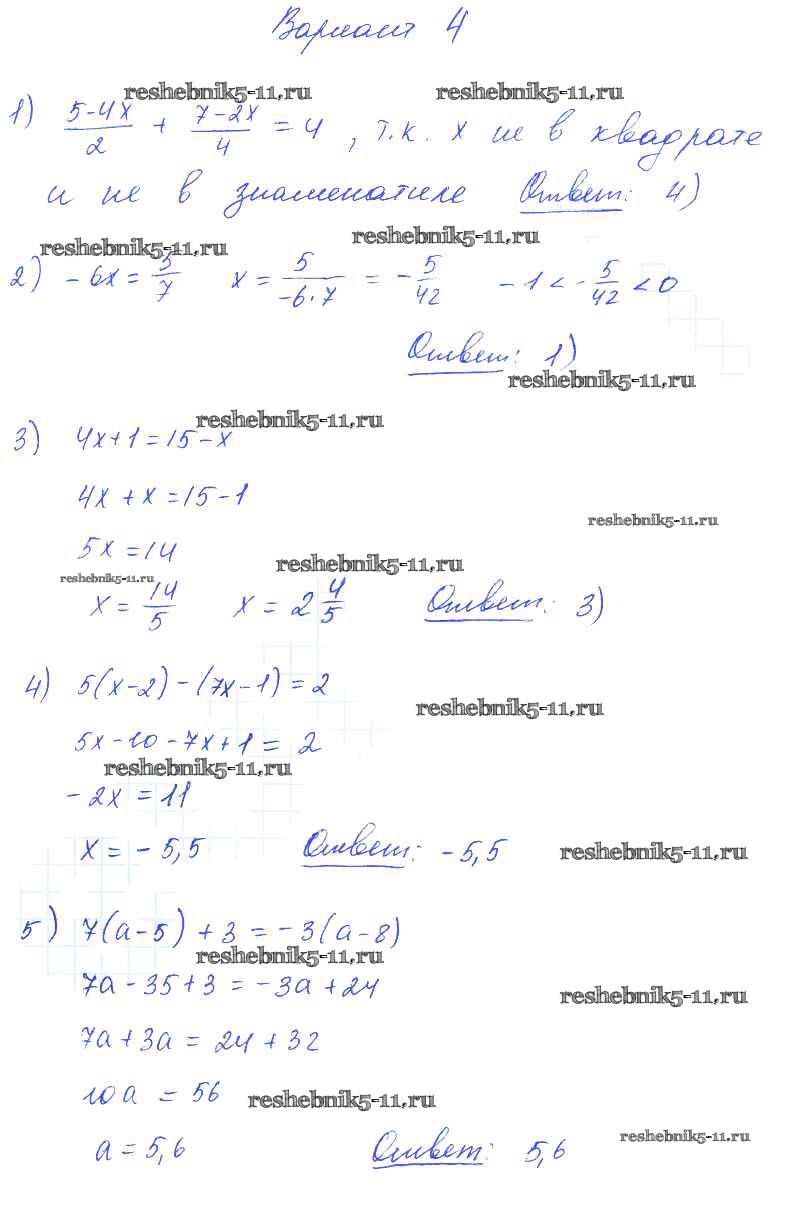 Готовая домашняя работа с ответами по Алгебре за 7 класс Глазков, Гаиашвили Самостоятельные и контрольные работы УМК Экзамен 2019 ФГОС - СР-5 вариант 4