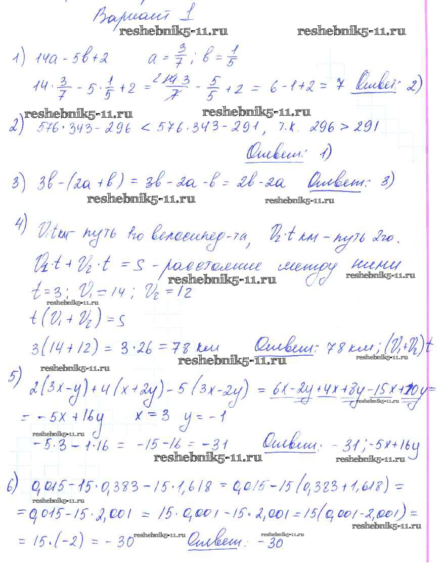 Готовая домашняя работа с ответами по Алгебре за 7 класс Глазков, Гаиашвили Самостоятельные и контрольные работы УМК Экзамен 2019 ФГОС - КР-1 (варианты) вариант 1