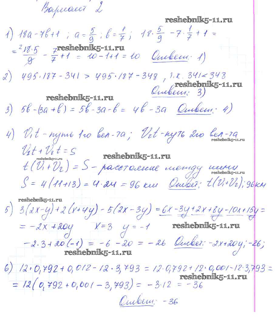 Готовая домашняя работа с ответами по Алгебре за 7 класс Глазков, Гаиашвили Самостоятельные и контрольные работы УМК Экзамен 2019 ФГОС - КР-1 (варианты) вариант 2