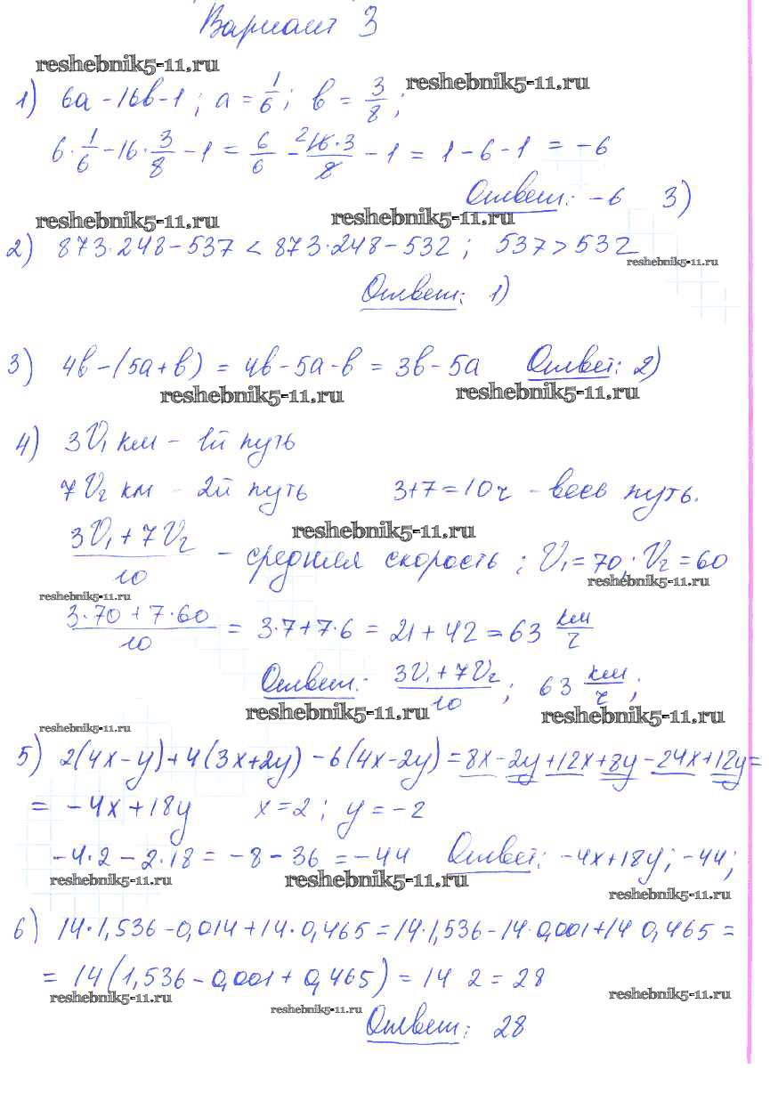 Готовая домашняя работа с ответами по Алгебре за 7 класс Глазков, Гаиашвили Самостоятельные и контрольные работы УМК Экзамен 2019 ФГОС - КР-1 (варианты) вариант 3