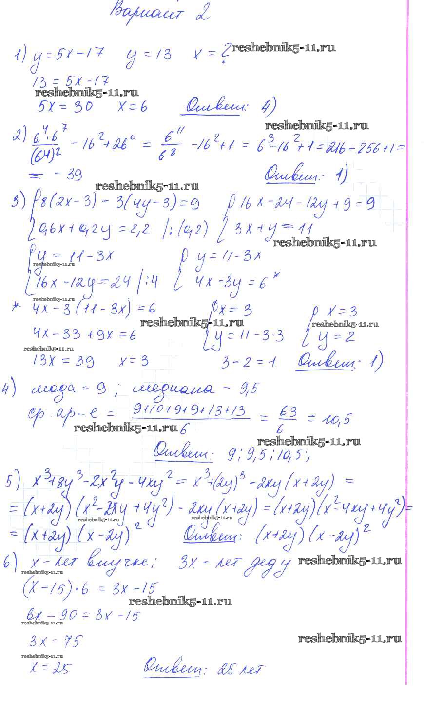 Готовая домашняя работа с ответами по Алгебре за 7 класс Глазков, Гаиашвили Самостоятельные и контрольные работы УМК Экзамен 2019 ФГОС - КР-10 вариант 2