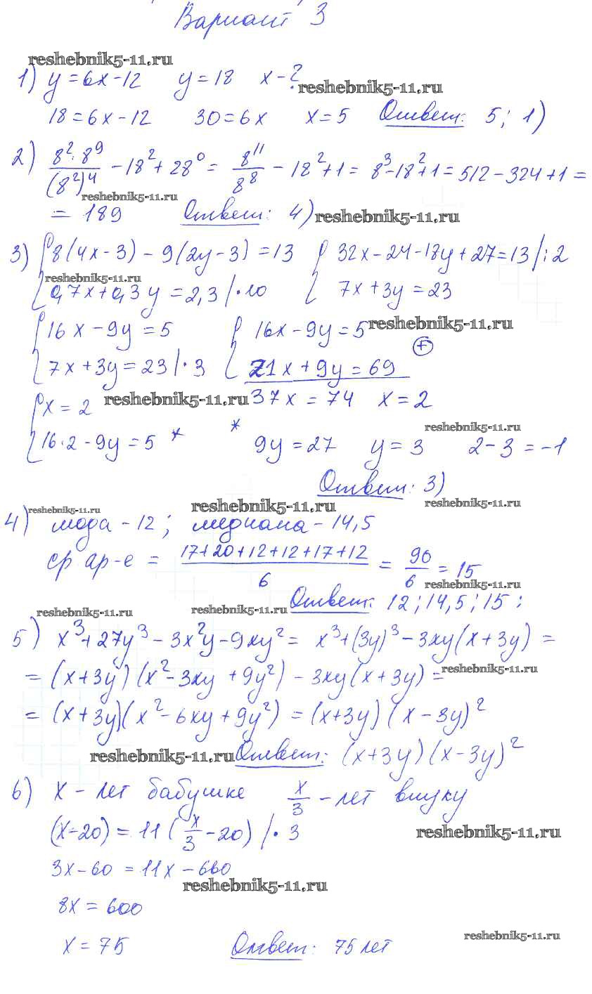 Готовая домашняя работа с ответами по Алгебре за 7 класс Глазков, Гаиашвили Самостоятельные и контрольные работы УМК Экзамен 2019 ФГОС - КР-10 вариант 3