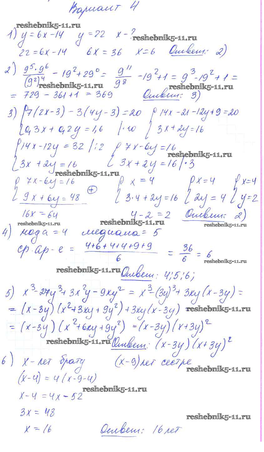 Готовая домашняя работа с ответами по Алгебре за 7 класс Глазков, Гаиашвили Самостоятельные и контрольные работы УМК Экзамен 2019 ФГОС - КР-10 вариант 4