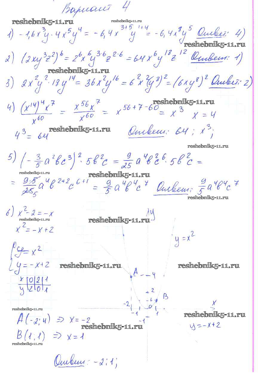 Готовая домашняя работа с ответами по Алгебре за 7 класс Глазков, Гаиашвили Самостоятельные и контрольные работы УМК Экзамен 2019 ФГОС - КР-4 вариант 4
