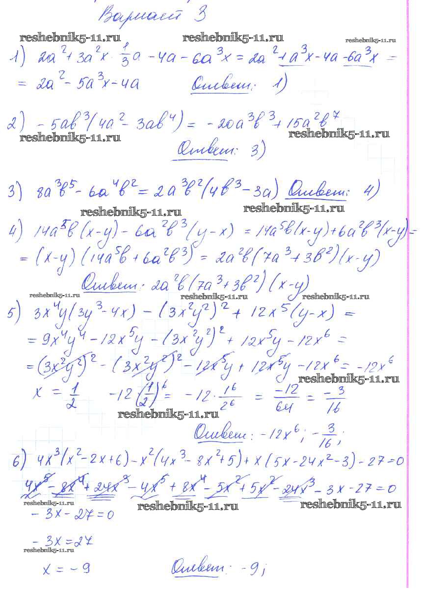 Готовая домашняя работа с ответами по Алгебре за 7 класс Глазков, Гаиашвили Самостоятельные и контрольные работы УМК Экзамен 2019 ФГОС - КР-5 вариант 3