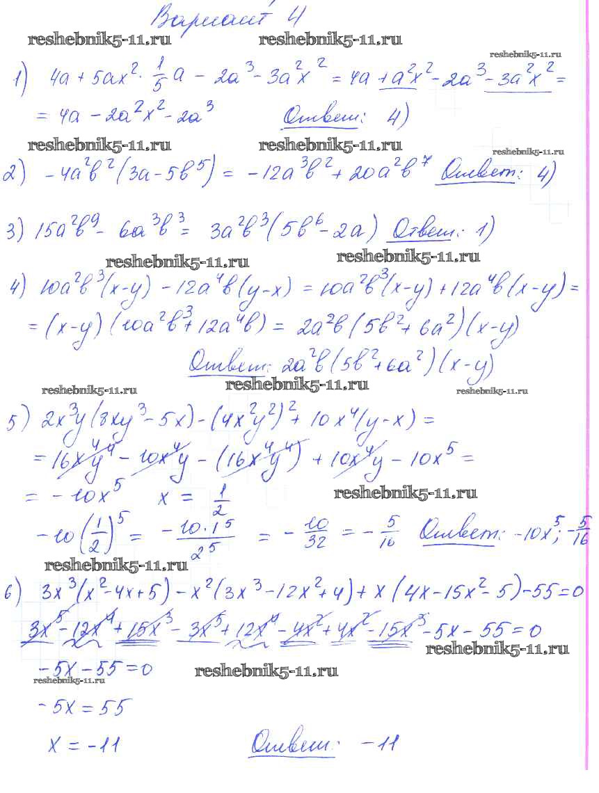 Готовая домашняя работа с ответами по Алгебре за 7 класс Глазков, Гаиашвили Самостоятельные и контрольные работы УМК Экзамен 2019 ФГОС - КР-5 вариант 4