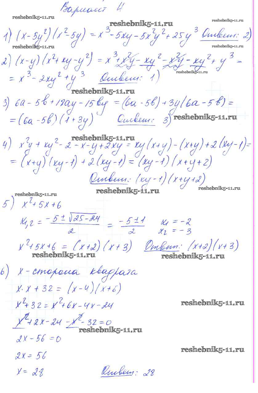 Готовая домашняя работа с ответами по Алгебре за 7 класс Глазков, Гаиашвили Самостоятельные и контрольные работы УМК Экзамен 2019 ФГОС - КР-6 вариант 4