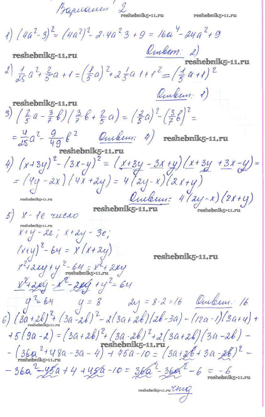 Готовая домашняя работа с ответами по Алгебре за 7 класс Глазков, Гаиашвили Самостоятельные и контрольные работы УМК Экзамен 2019 ФГОС - КР-7 вариант 2