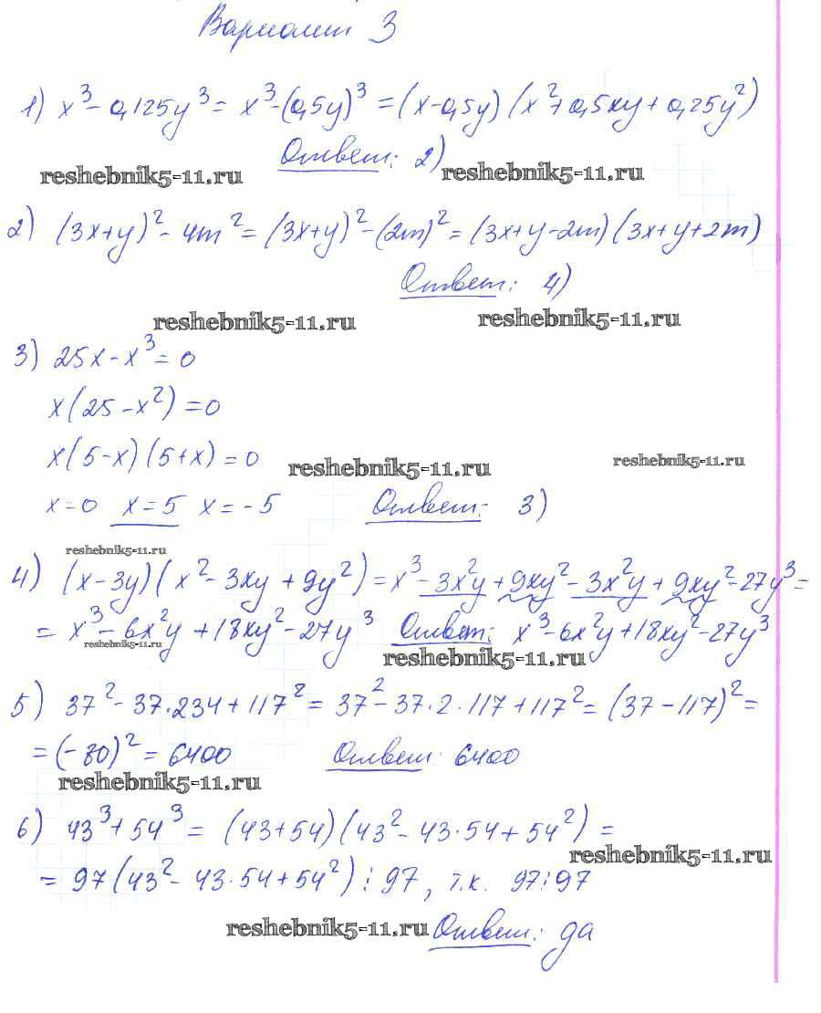 Готовая домашняя работа с ответами по Алгебре за 7 класс Глазков, Гаиашвили Самостоятельные и контрольные работы УМК Экзамен 2019 ФГОС - КР-8 вариант 3