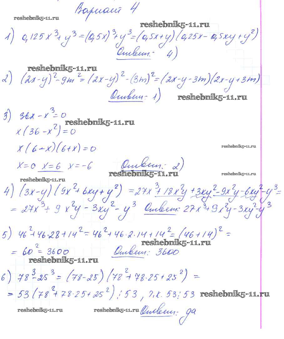 Готовая домашняя работа с ответами по Алгебре за 7 класс Глазков, Гаиашвили Самостоятельные и контрольные работы УМК Экзамен 2019 ФГОС - КР-8 вариант 4