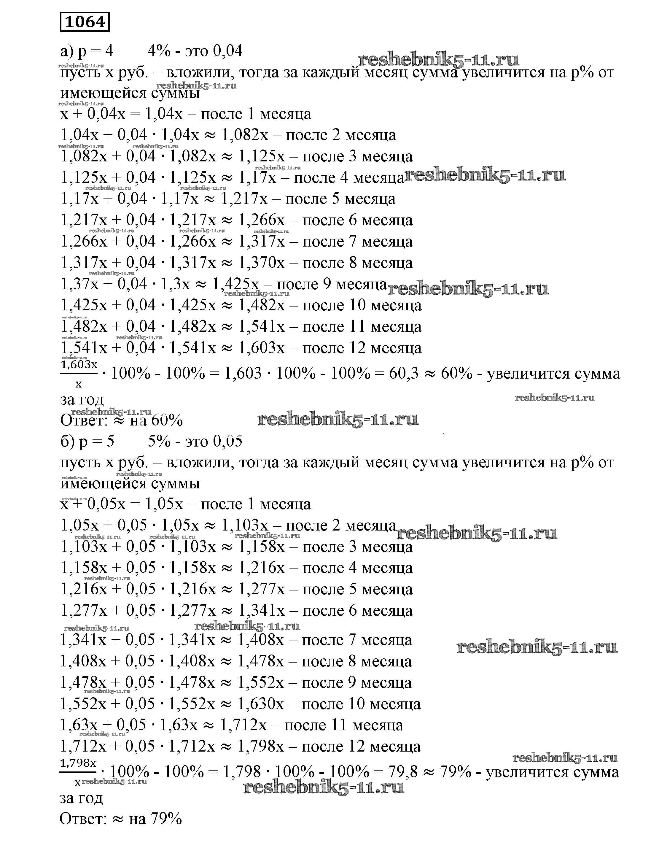 Готовая домашняя работа с ответами по Алгебре за 7 класс Никольский, Потапов, Решетников, Шевкин Учебник МГУ - школе Просвещение 2013 ФГОС - Упражнения 1064