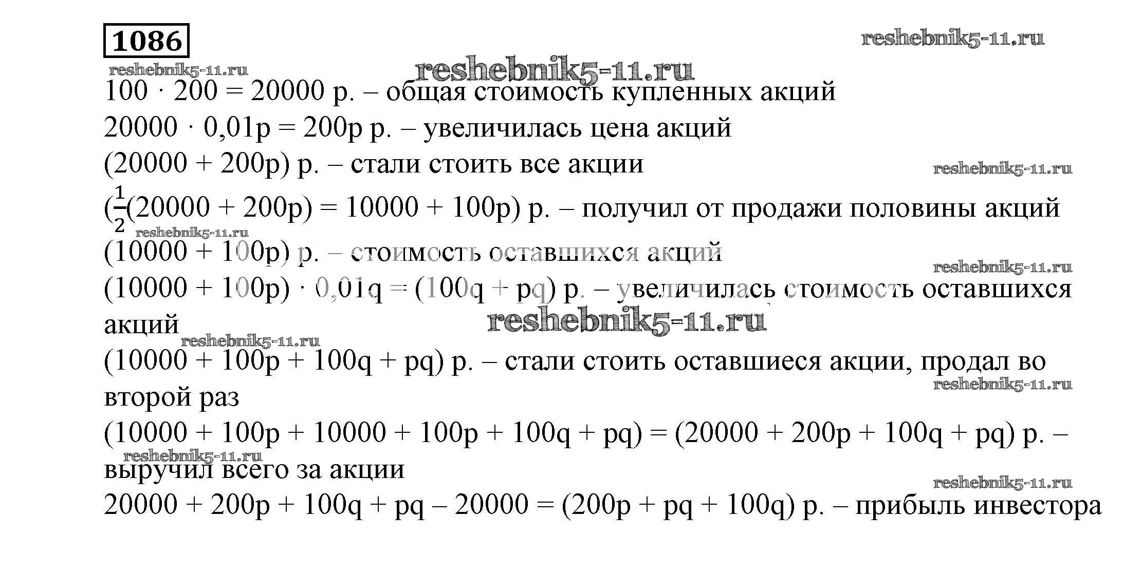 Готовая домашняя работа с ответами по Алгебре за 7 класс Никольский, Потапов, Решетников, Шевкин Учебник МГУ - школе Просвещение 2013 ФГОС - Упражнения 1086