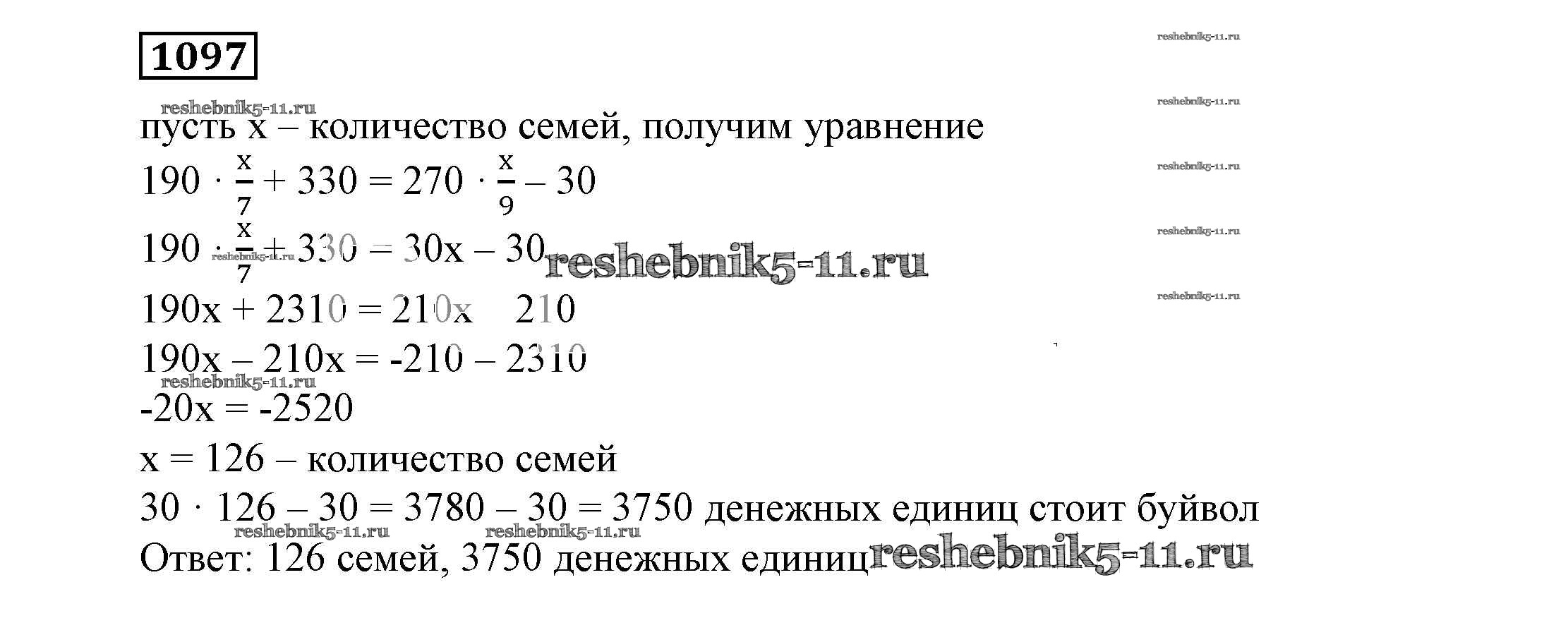 Готовая домашняя работа с ответами по Алгебре за 7 класс Никольский, Потапов, Решетников, Шевкин Учебник МГУ - школе Просвещение 2013 ФГОС - Упражнения 1097