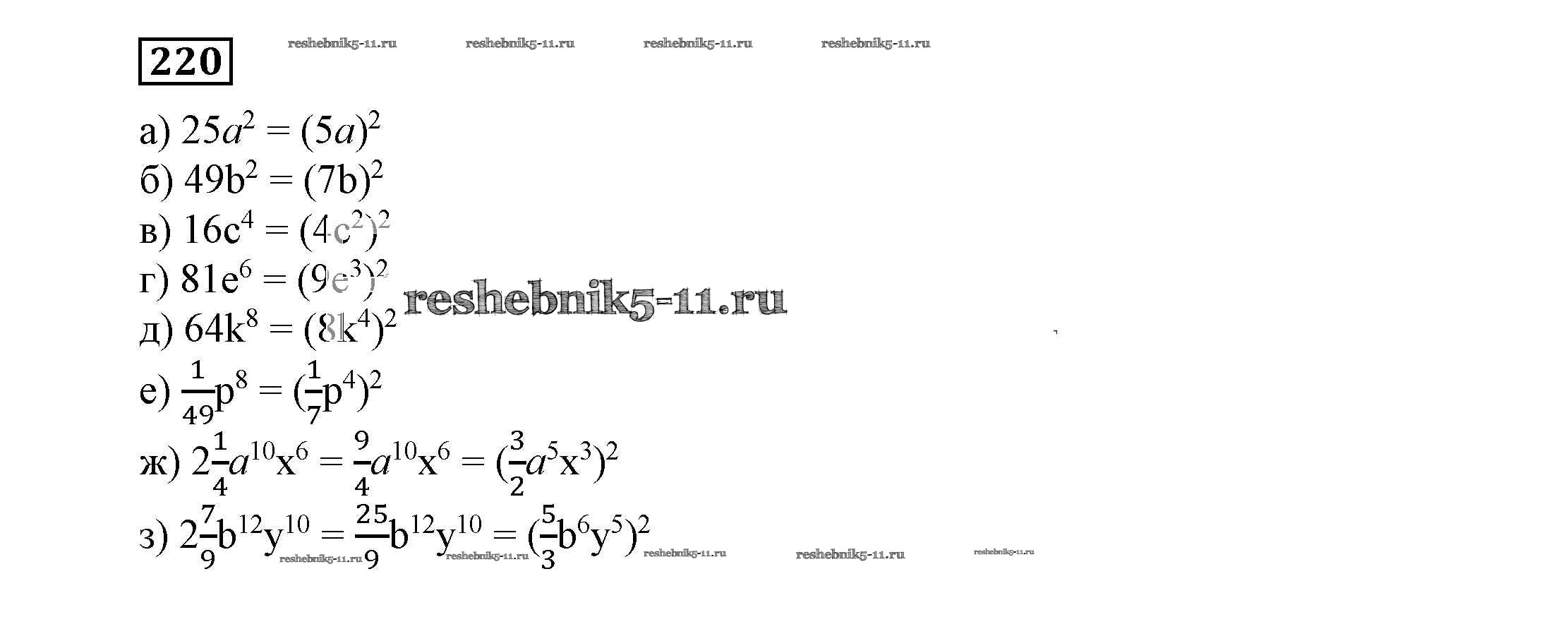 Готовая домашняя работа с ответами по Алгебре за 7 класс Никольский, Потапов, Решетников, Шевкин Учебник МГУ - школе Просвещение 2013 ФГОС - Упражнения 220