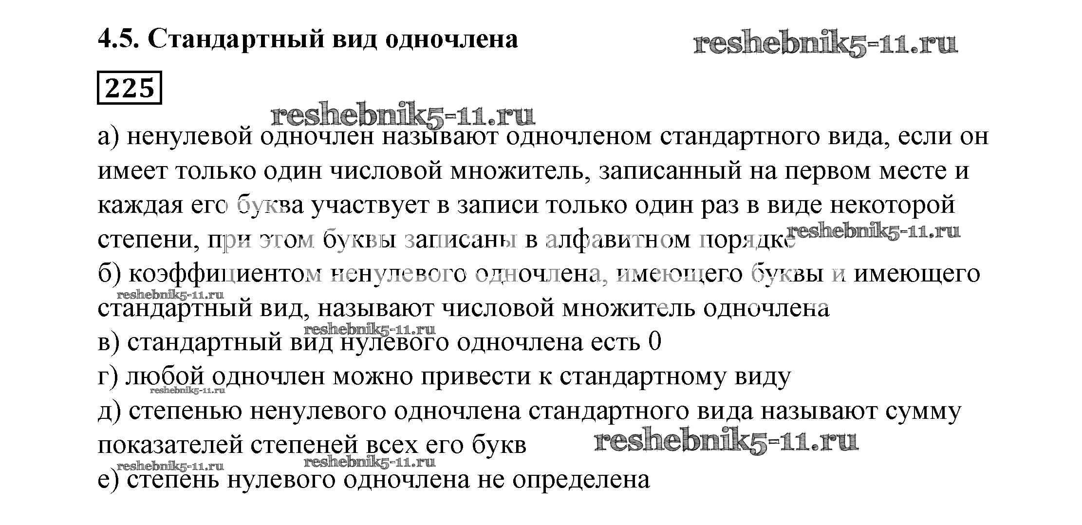 Готовая домашняя работа с ответами по Алгебре за 7 класс Никольский, Потапов, Решетников, Шевкин Учебник МГУ - школе Просвещение 2013 ФГОС - Упражнения 225