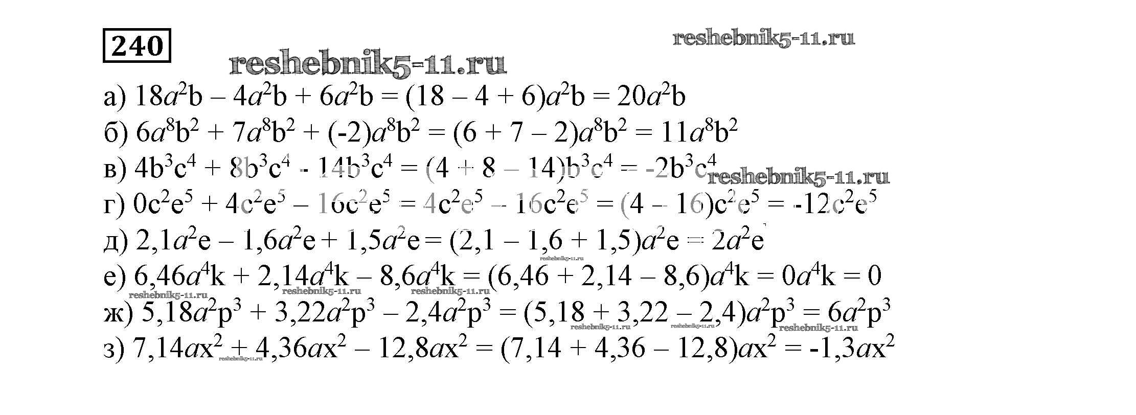 Готовая домашняя работа с ответами по Алгебре за 7 класс Никольский, Потапов, Решетников, Шевкин Учебник МГУ - школе Просвещение 2013 ФГОС - Упражнения 240