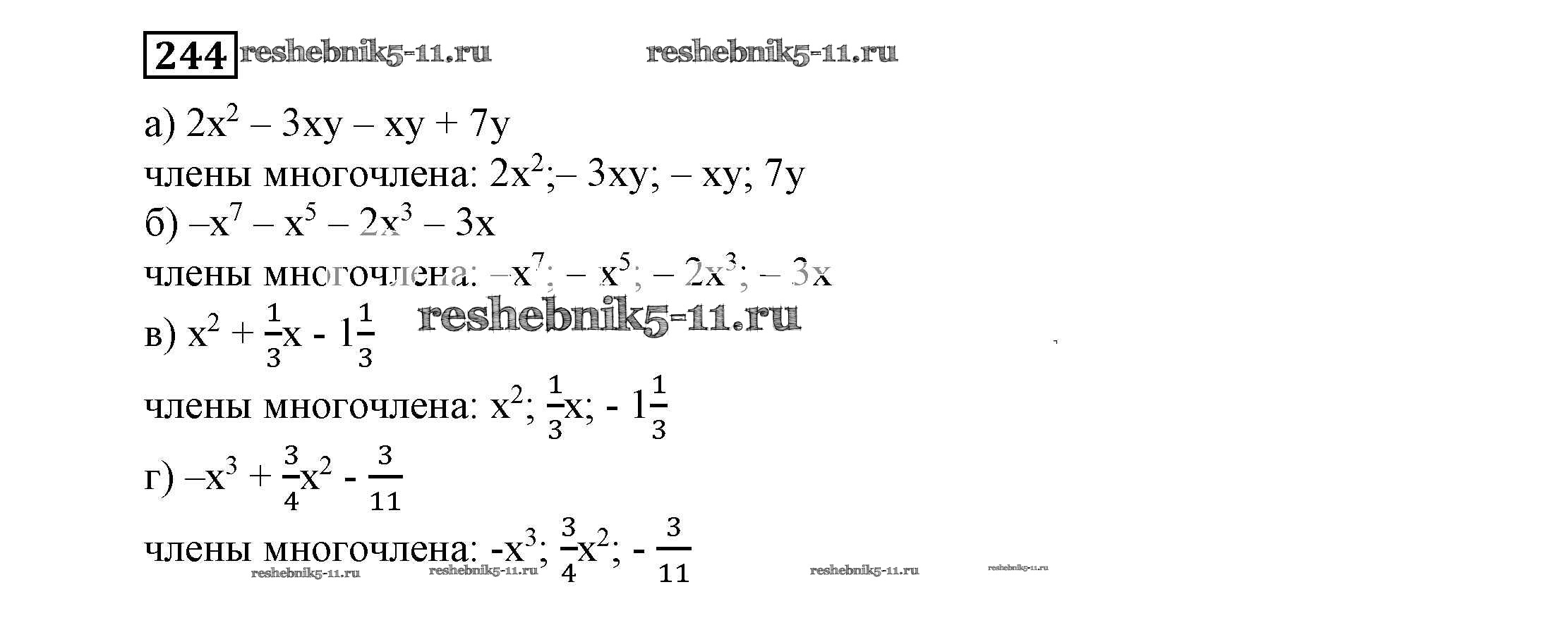 Готовая домашняя работа с ответами по Алгебре за 7 класс Никольский, Потапов, Решетников, Шевкин Учебник МГУ - школе Просвещение 2013 ФГОС - Упражнения 244