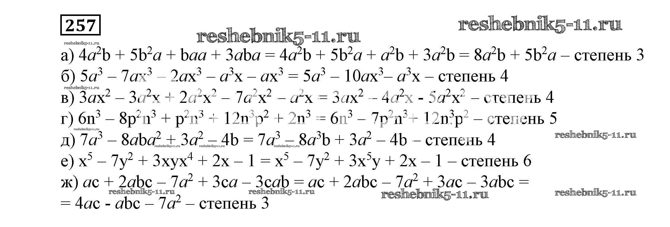 Готовая домашняя работа с ответами по Алгебре за 7 класс Никольский, Потапов, Решетников, Шевкин Учебник МГУ - школе Просвещение 2013 ФГОС - Упражнения 257