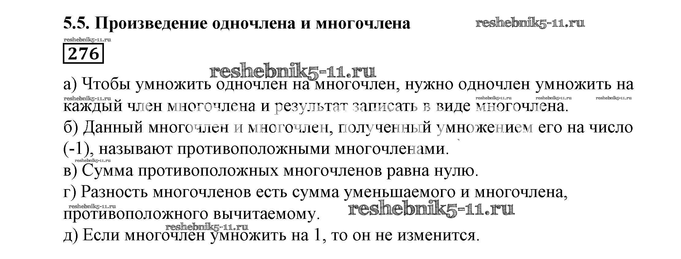 Готовая домашняя работа с ответами по Алгебре за 7 класс Никольский, Потапов, Решетников, Шевкин Учебник МГУ - школе Просвещение 2013 ФГОС - Упражнения 276