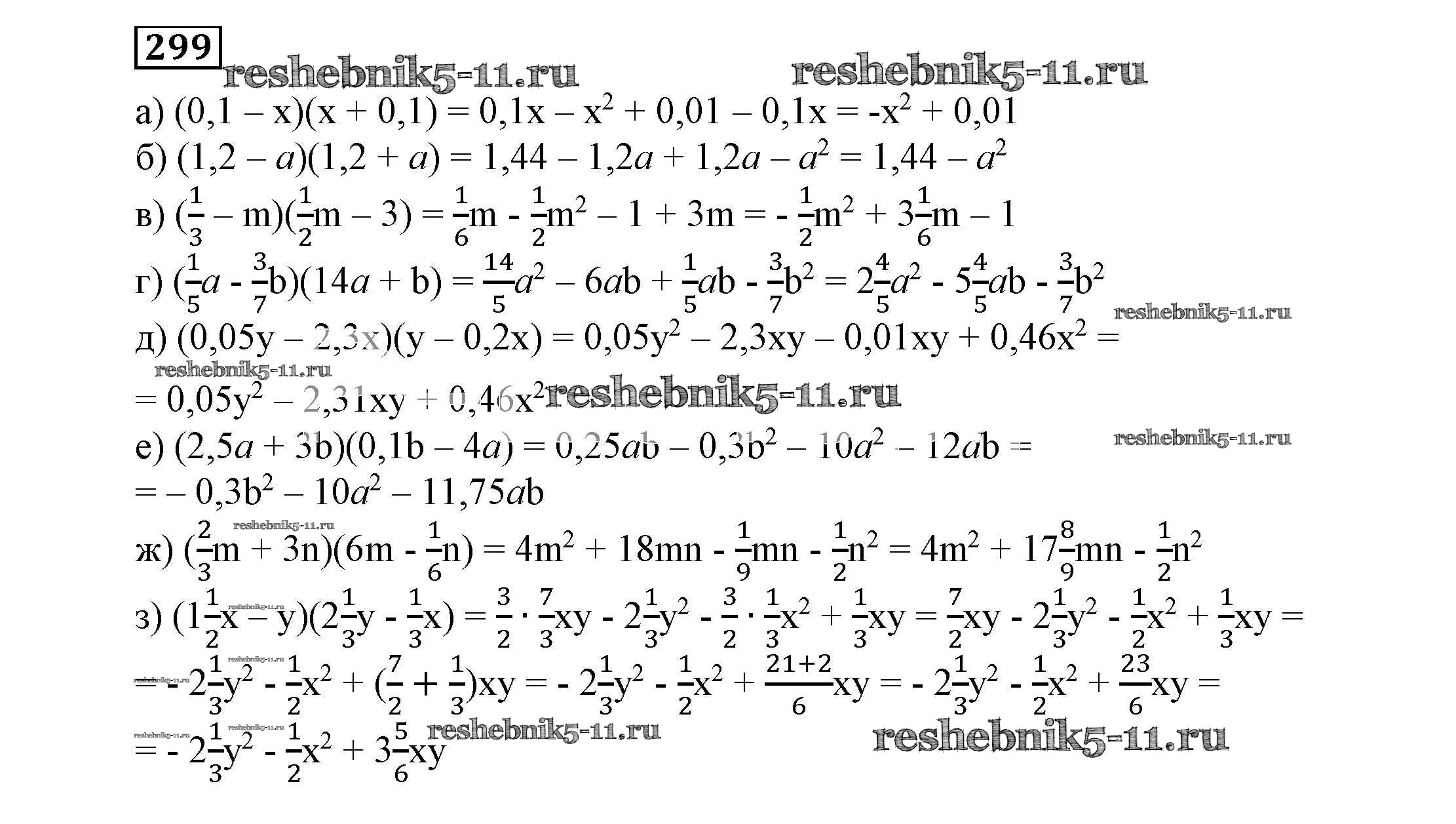 Готовая домашняя работа с ответами по Алгебре за 7 класс Никольский, Потапов, Решетников, Шевкин Учебник МГУ - школе Просвещение 2013 ФГОС - Упражнения 299