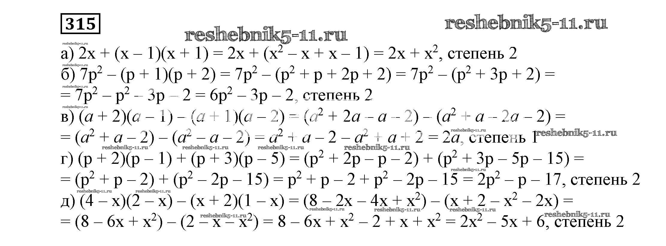 Готовая домашняя работа с ответами по Алгебре за 7 класс Никольский, Потапов, Решетников, Шевкин Учебник МГУ - школе Просвещение 2013 ФГОС - Упражнения 315