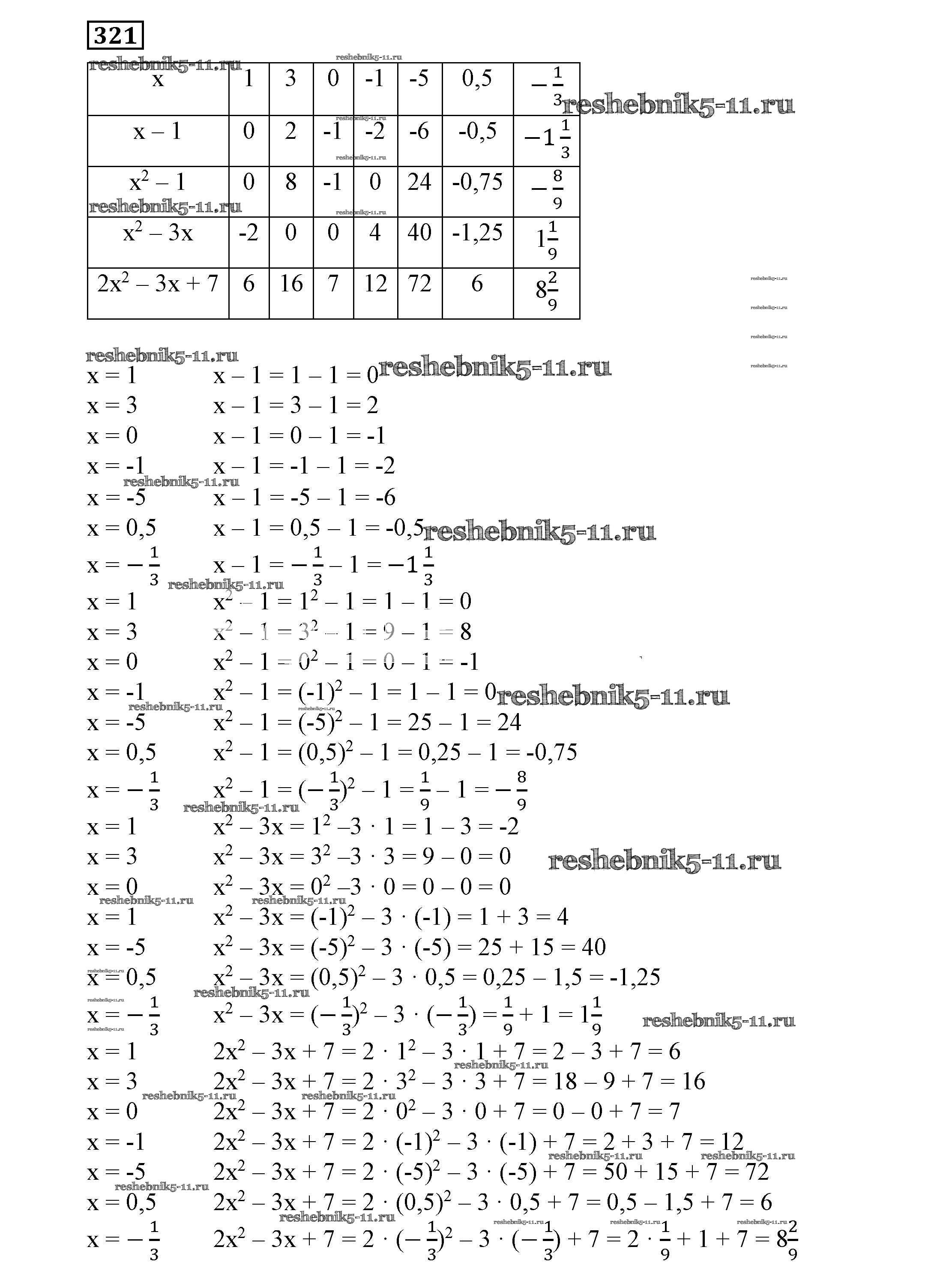 Готовая домашняя работа с ответами по Алгебре за 7 класс Никольский, Потапов, Решетников, Шевкин Учебник МГУ - школе Просвещение 2013 ФГОС - Упражнения 321
