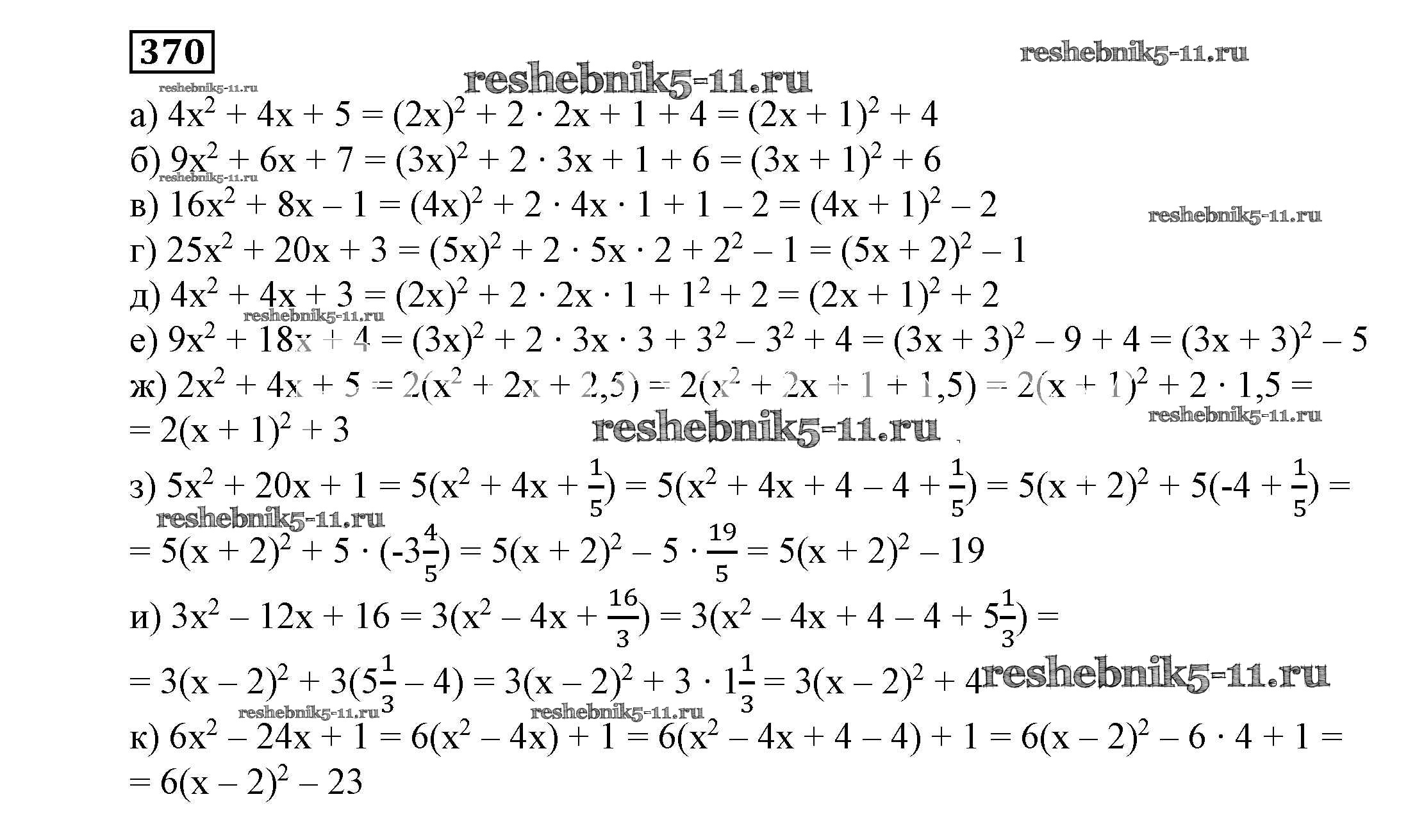 Готовая домашняя работа с ответами по Алгебре за 7 класс Никольский, Потапов, Решетников, Шевкин Учебник МГУ - школе Просвещение 2013 ФГОС - Упражнения 370