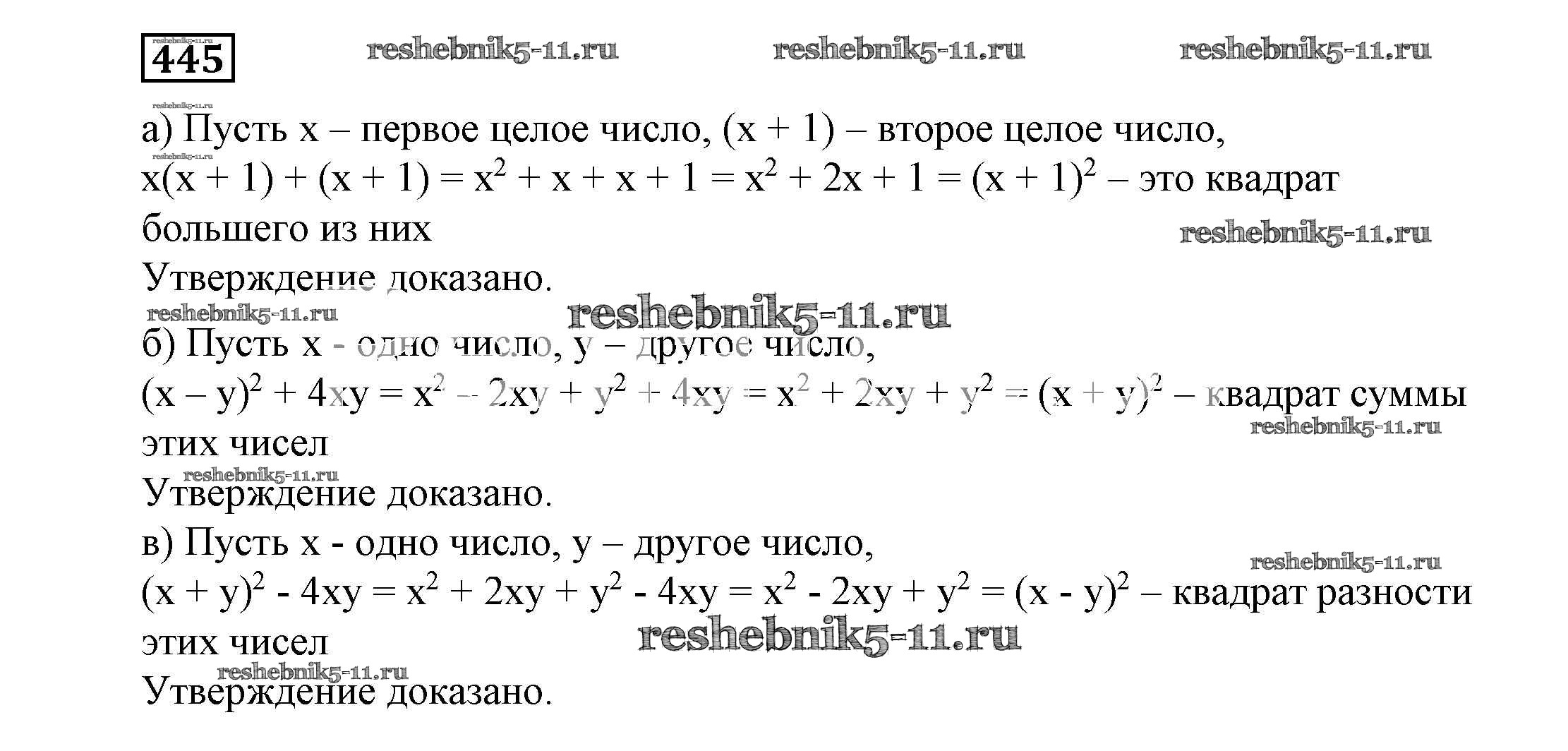 Готовая домашняя работа с ответами по Алгебре за 7 класс Никольский, Потапов, Решетников, Шевкин Учебник МГУ - школе Просвещение 2013 ФГОС - Упражнения 445