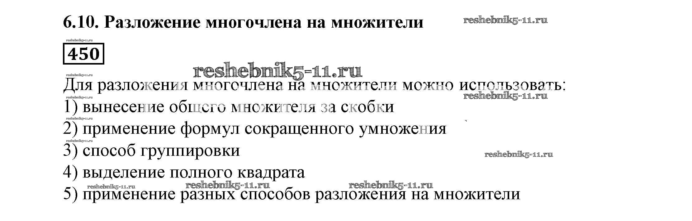 Готовая домашняя работа с ответами по Алгебре за 7 класс Никольский, Потапов, Решетников, Шевкин Учебник МГУ - школе Просвещение 2013 ФГОС - Упражнения 450