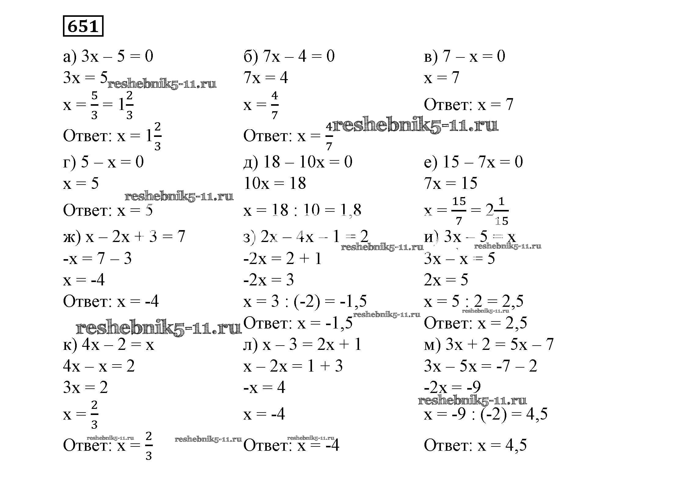 Готовая домашняя работа с ответами по Алгебре за 7 класс Никольский, Потапов, Решетников, Шевкин Учебник МГУ - школе Просвещение 2013 ФГОС - Упражнения 651