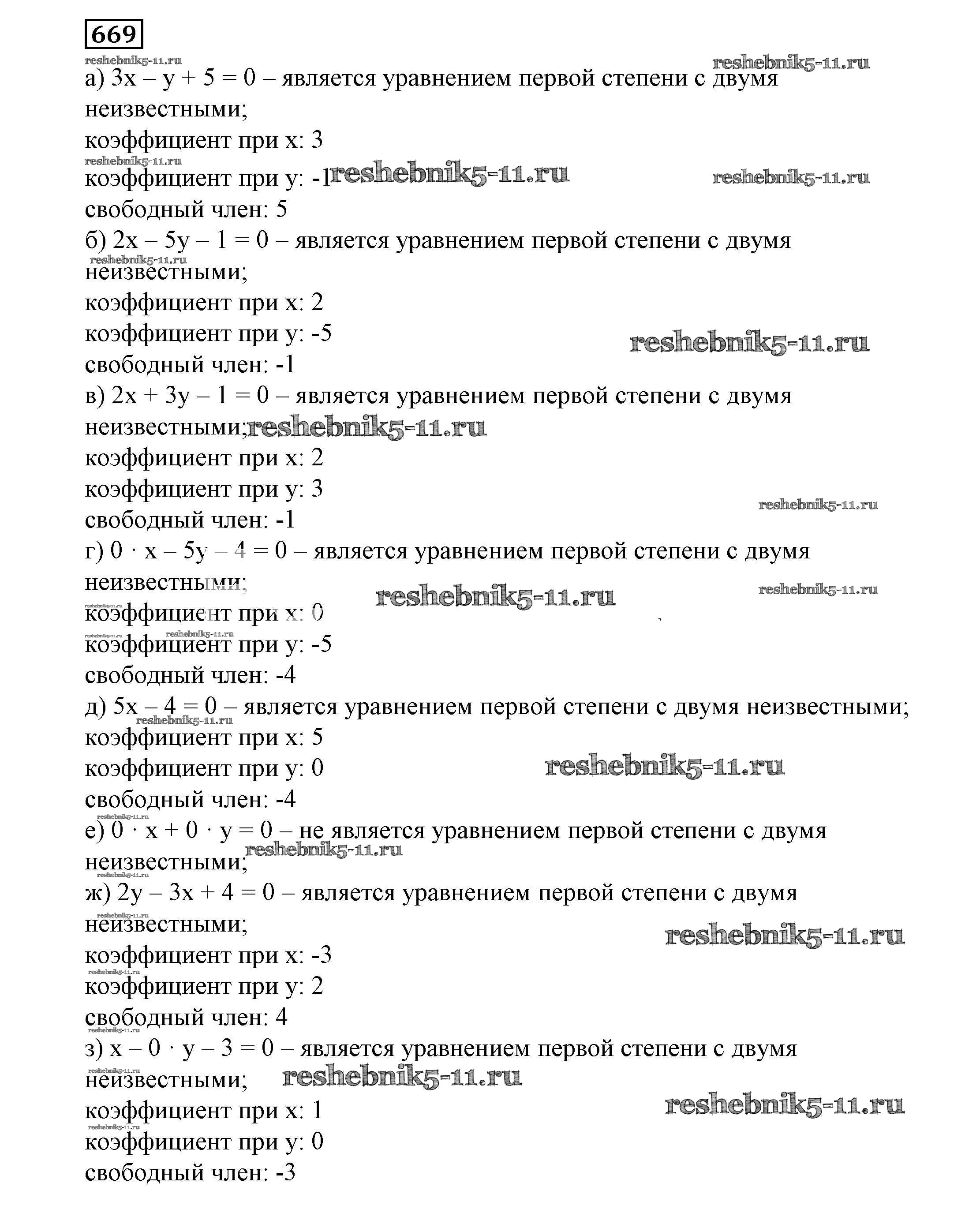 Готовая домашняя работа с ответами по Алгебре за 7 класс Никольский, Потапов, Решетников, Шевкин Учебник МГУ - школе Просвещение 2013 ФГОС - Упражнения 669