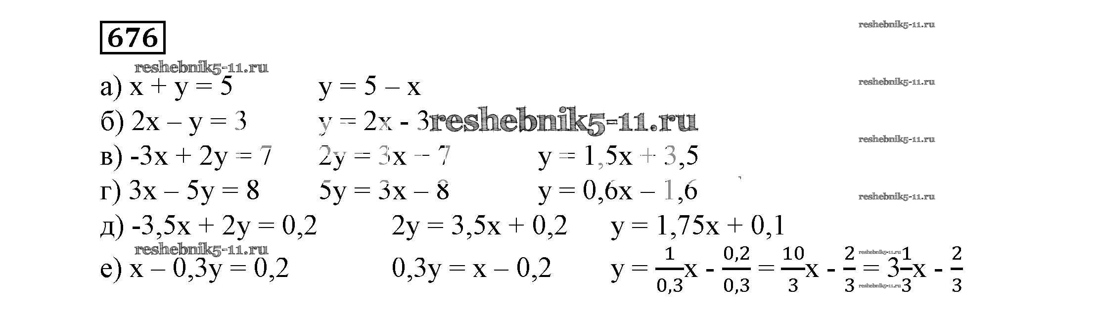 Готовая домашняя работа с ответами по Алгебре за 7 класс Никольский, Потапов, Решетников, Шевкин Учебник МГУ - школе Просвещение 2013 ФГОС - Упражнения 676
