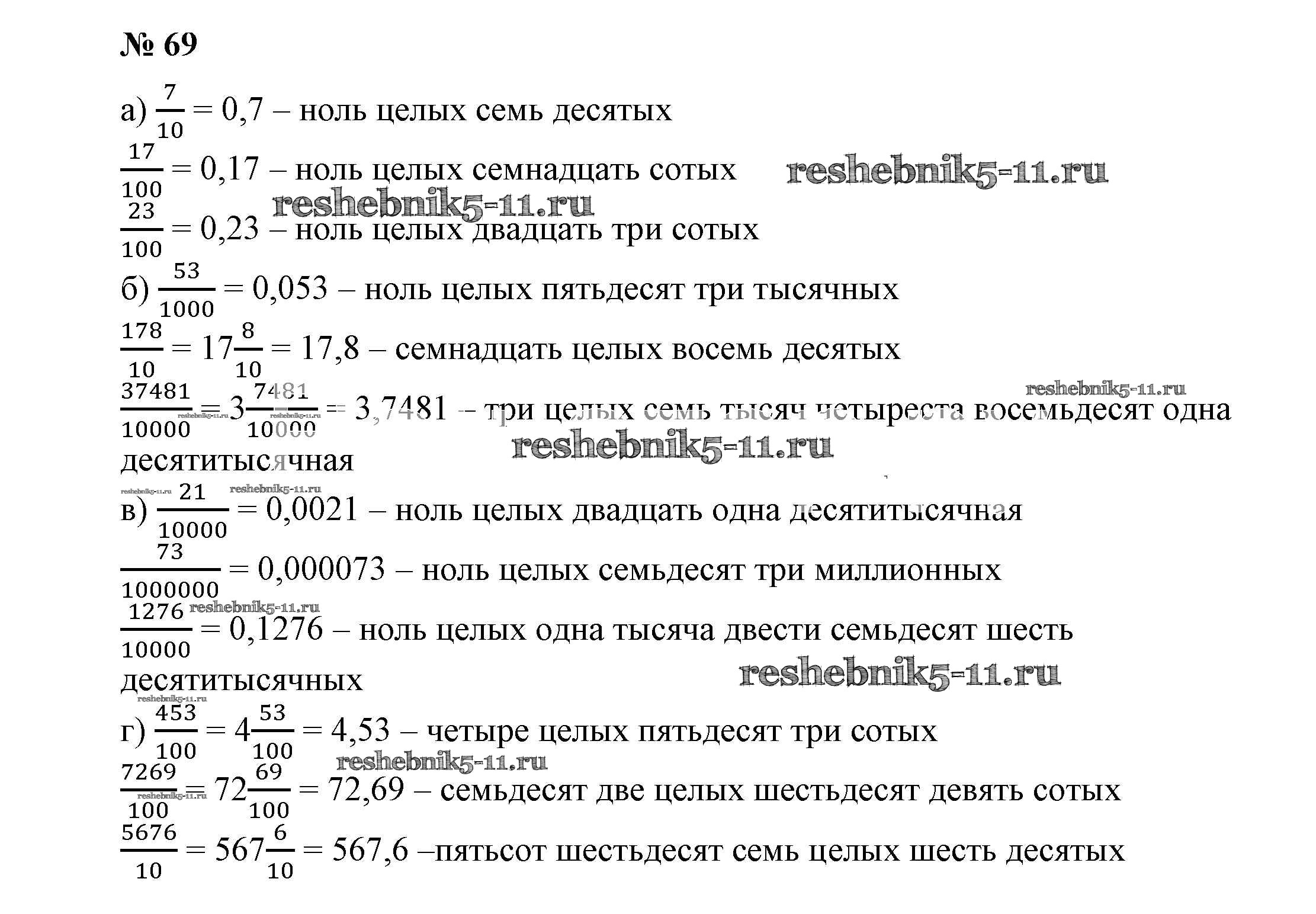 Готовая домашняя работа с ответами по Алгебре за 7 класс Никольский, Потапов, Решетников, Шевкин Учебник МГУ - школе Просвещение 2013 ФГОС - Упражнения 69