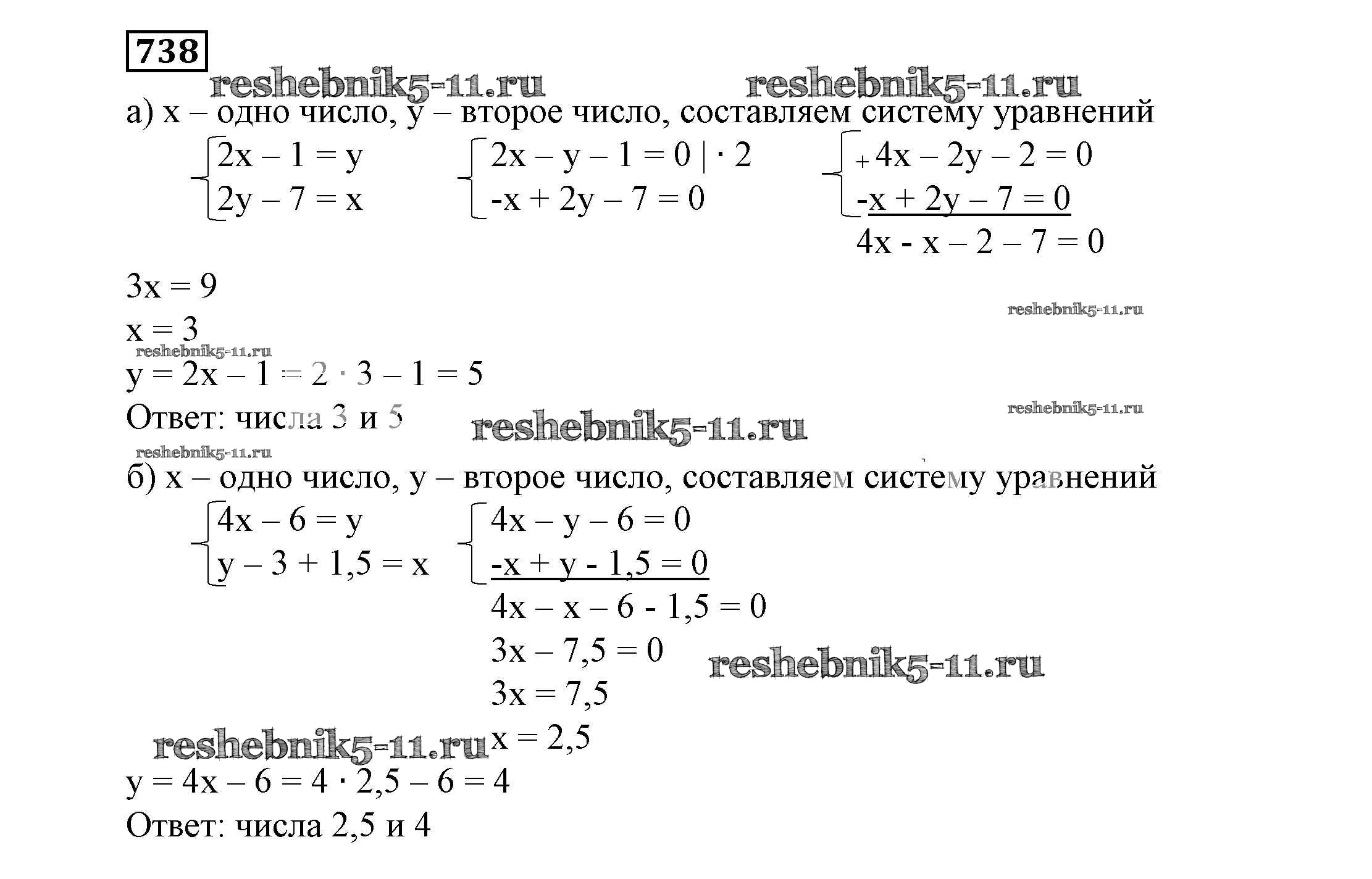 Готовая домашняя работа с ответами по Алгебре за 7 класс Никольский, Потапов, Решетников, Шевкин Учебник МГУ - школе Просвещение 2013 ФГОС - Упражнения 738