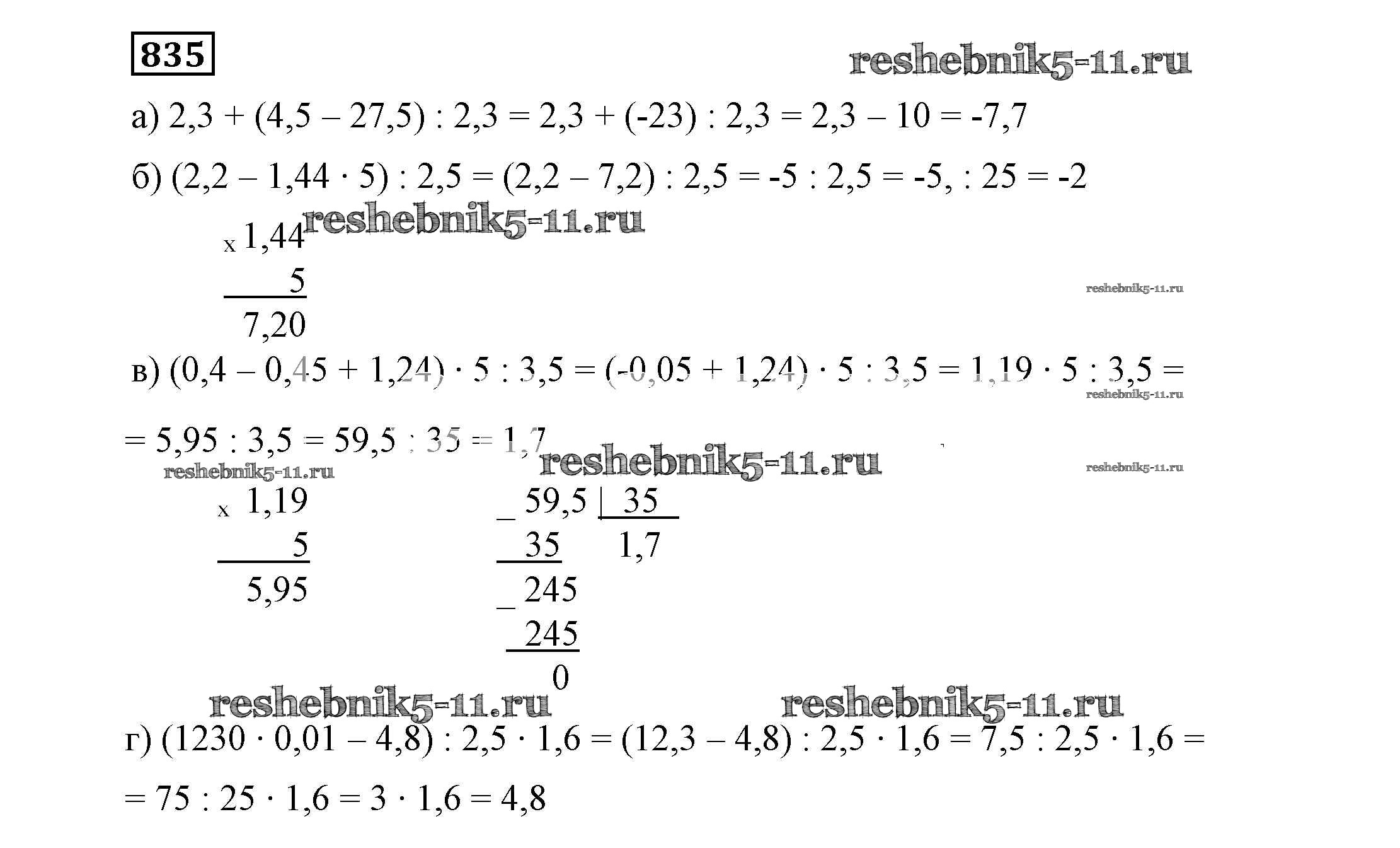 Готовая домашняя работа с ответами по Алгебре за 7 класс Никольский, Потапов, Решетников, Шевкин Учебник МГУ - школе Просвещение 2013 ФГОС - Упражнения 835