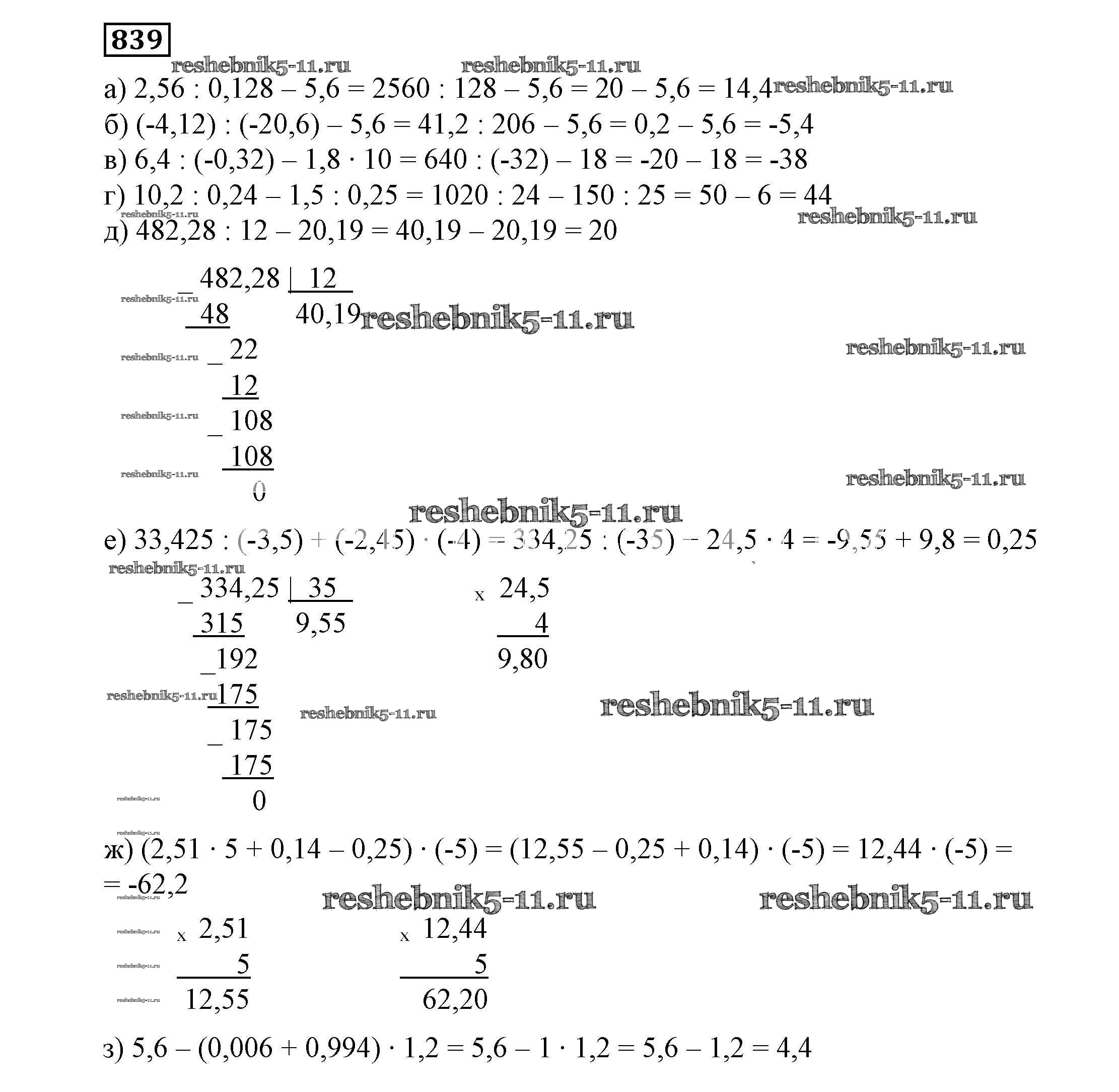 Готовая домашняя работа с ответами по Алгебре за 7 класс Никольский, Потапов, Решетников, Шевкин Учебник МГУ - школе Просвещение 2013 ФГОС - Упражнения 839