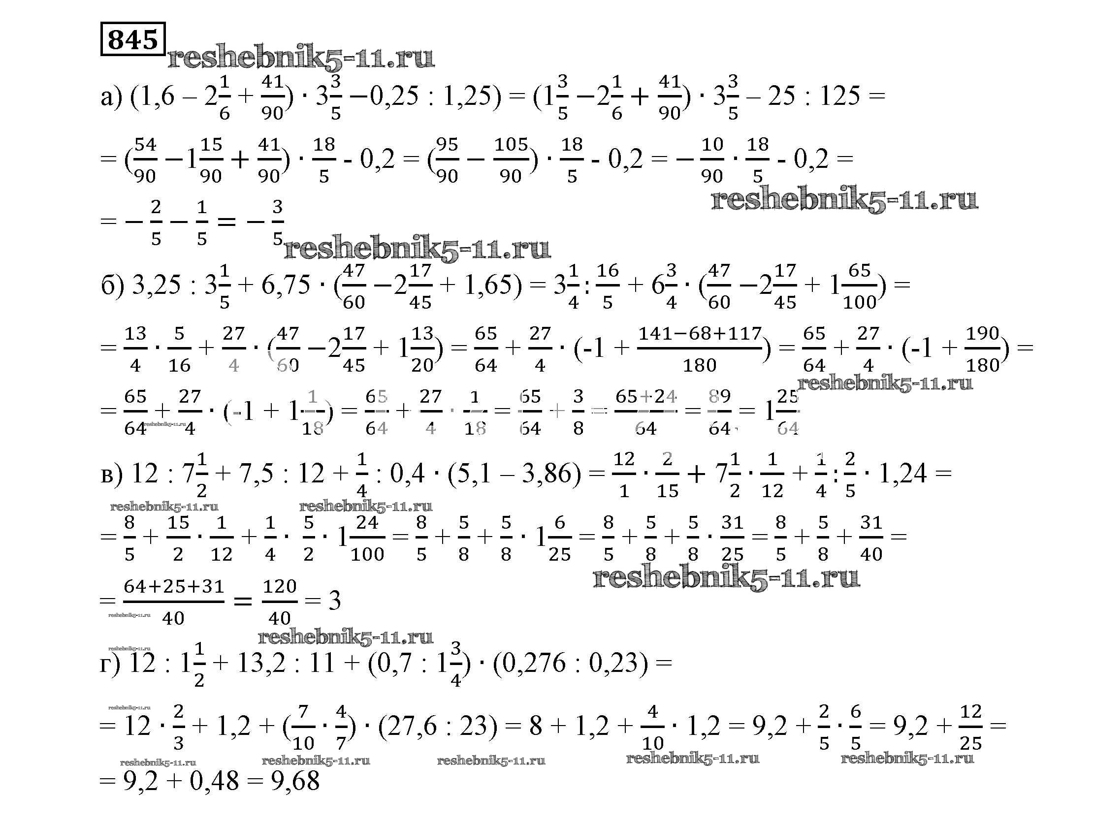 Готовая домашняя работа с ответами по Алгебре за 7 класс Никольский, Потапов, Решетников, Шевкин Учебник МГУ - школе Просвещение 2013 ФГОС - Упражнения 845