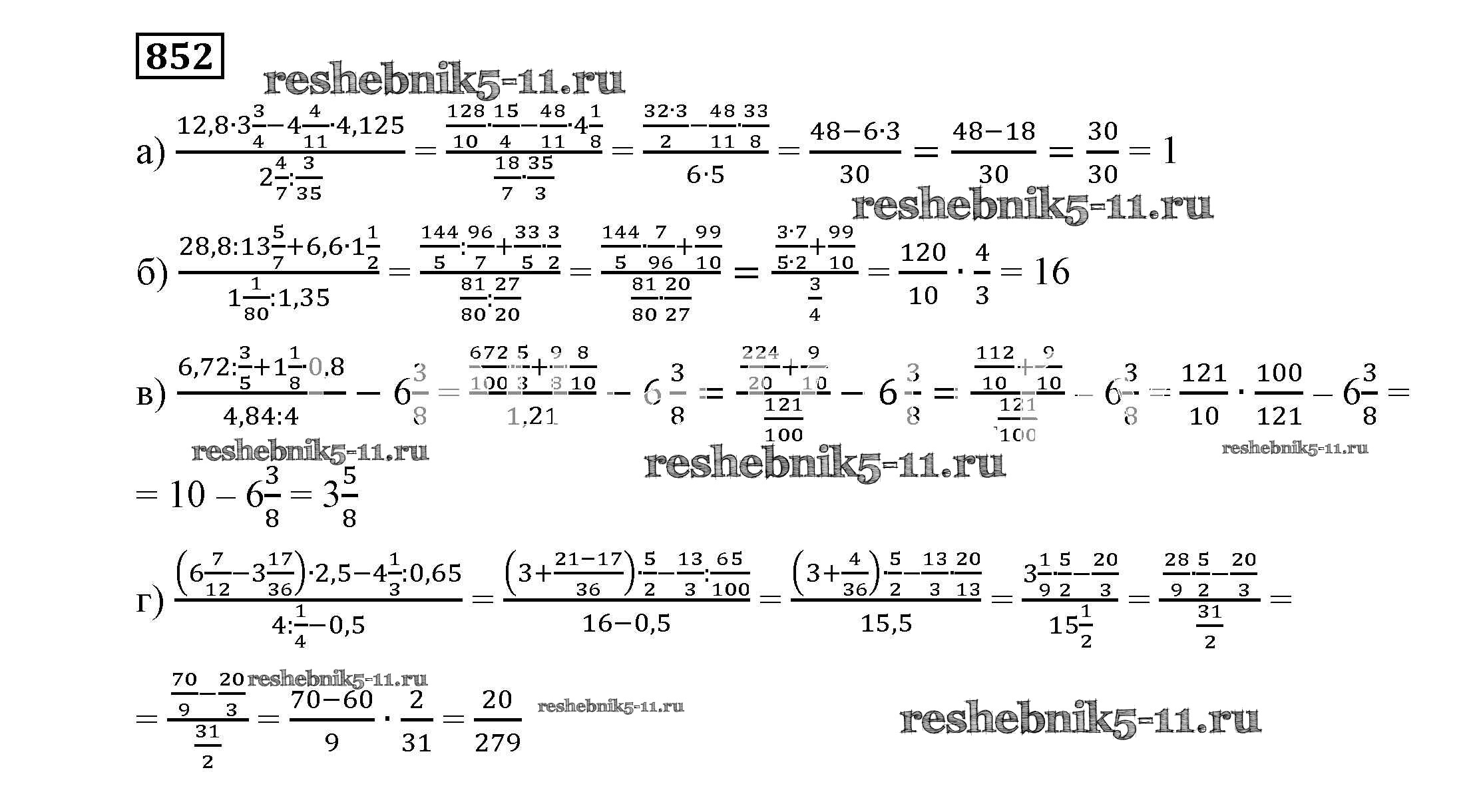 Готовая домашняя работа с ответами по Алгебре за 7 класс Никольский, Потапов, Решетников, Шевкин Учебник МГУ - школе Просвещение 2013 ФГОС - Упражнения 852